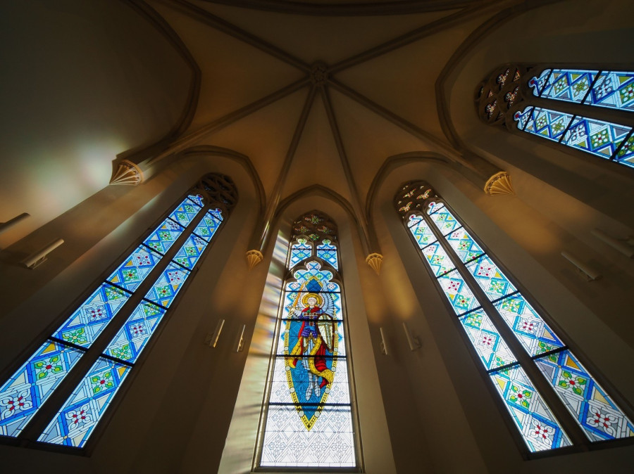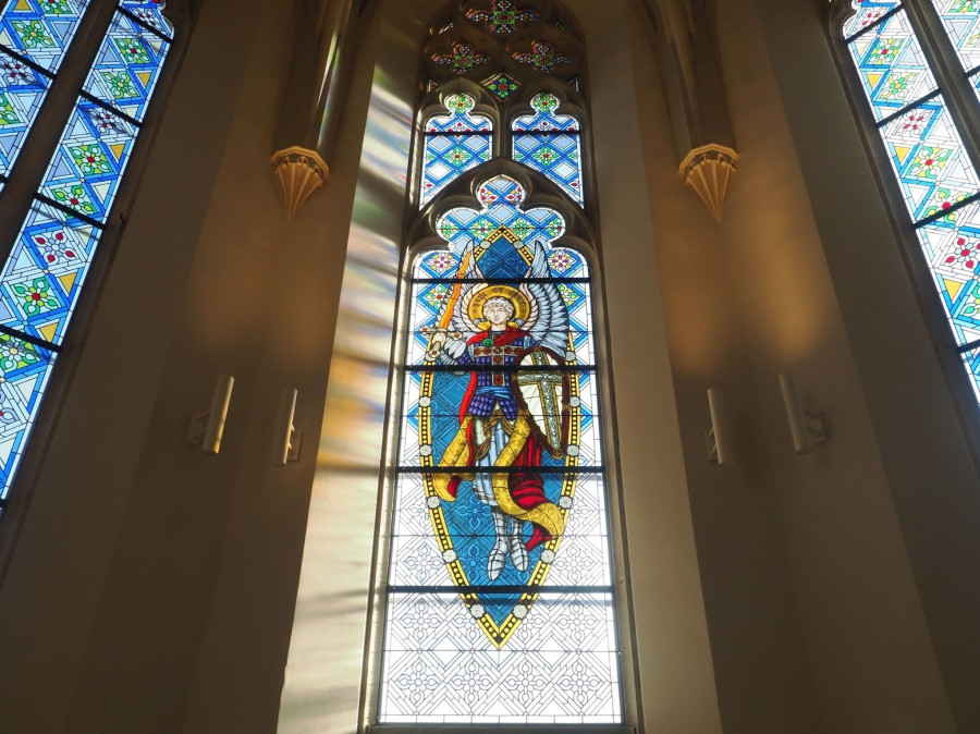 Részben elkészültek a Szent Mihály Főszékesegyház új, színes üvegablakai. A beruházás első fázisában elvégzett művészettörténeti kutatások kimutatták, hogy több, öt-hat különböző stílusú üvegablak volt az épületben. Az eredeti Waltherr Gida által készített Szent Mihály ábrázolás a II. világháború során súlyosan megrongálódott, melynek helyreállítását nem végezték el. Ezt követően Árkayné Sztehlo Lili műve került a helyére, aki jellemzően modernista belsőépítészeti terekhez készített ablakokat. Az 1950-es évektől elhelyezett üvegablakok stílusukban idegenek voltak a főszékesegyháztól, valamint állapotuk sem volt kielégítő.