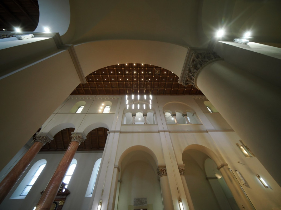 Ebből adódóan a szakemberek kiemelésük és restaurálásuk mellett döntöttek, melyet követően liturgikus és múzeumi terekben kapnak helyet. A főszékesegyház belső terének egységes stílusú megújításakor a századelős látványt vették alapul. Ehhez igazodva készültek el a Waltherr Gida által tervezett üvegablakok stílusát visszaidéző új, színes alkotások, melyek egyike a bazilika védőszentjét, Szent Mihály arkangyalt ábrázolja, ovális mandorlába helyezve.