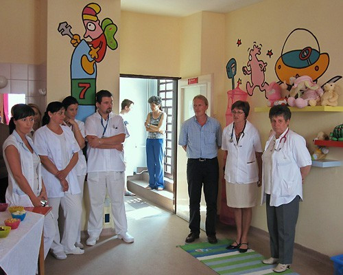 Dr. Szabó Éva centrumvezető főorvos köszöntötte a Gyermekgyógyászati Centrumban a megjelenteket május 27-én. A Veszprém Megyei Csolnoky Ferenc Kórház Nonprofit Zrt. és az Emberkék Alapítvány jóvoltából új játszószobát adtak át. Ez a szoba a játszó-napozó terasz mellé költözött, egy rég kórteremből alakították ki. Fő feladata a gyerekek és a szülők komfortjának javítása. Új felszereléseket, bútorokat helyeztek el benne. Adományoknak köszönhetően vannak a helységben játékok, könyvek és amire a gyerekeknek szüksége lehet.