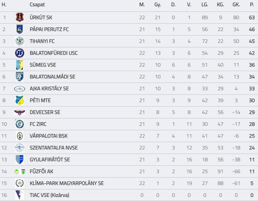 Tabella forrás: adatbank.mlsz.hu