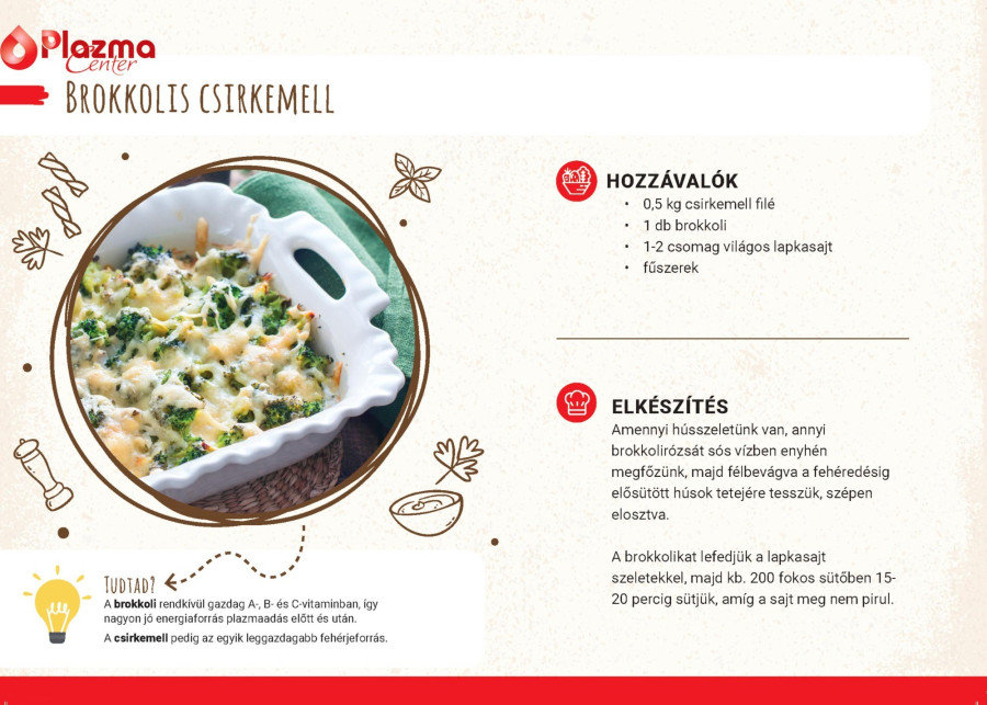 A tudatos egészséges életmód a plazmaadó számára is előnyös, és a levett vérplazma minősége is megfelelő lesz az életmentő gyógyszerek elkészítéséhez. Az alábbi receptötletek természetesen nem kizárólag plazmaadóknak szólnak, hanem bárkinek, aki szeretne jobban odafigyelni arra, mi kerül a tányérjára.