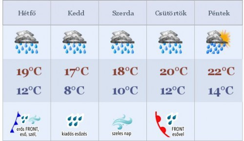 Hétfőn a hidegfronti hatás következtében már erősödhetnek reumatikus és görcsös panaszaink, emellett a légzőszervi megbetegedésben szenvedőknek a párás, fülledt levegő fokozott megterhelést jelenthet, valamint megnövekedhet a reflexidő is. A változékony idő egyeseknél koncentrációs nehézségeket, dekoncentráltságot okozhat. A szeles idő fejfájást okozhat.
