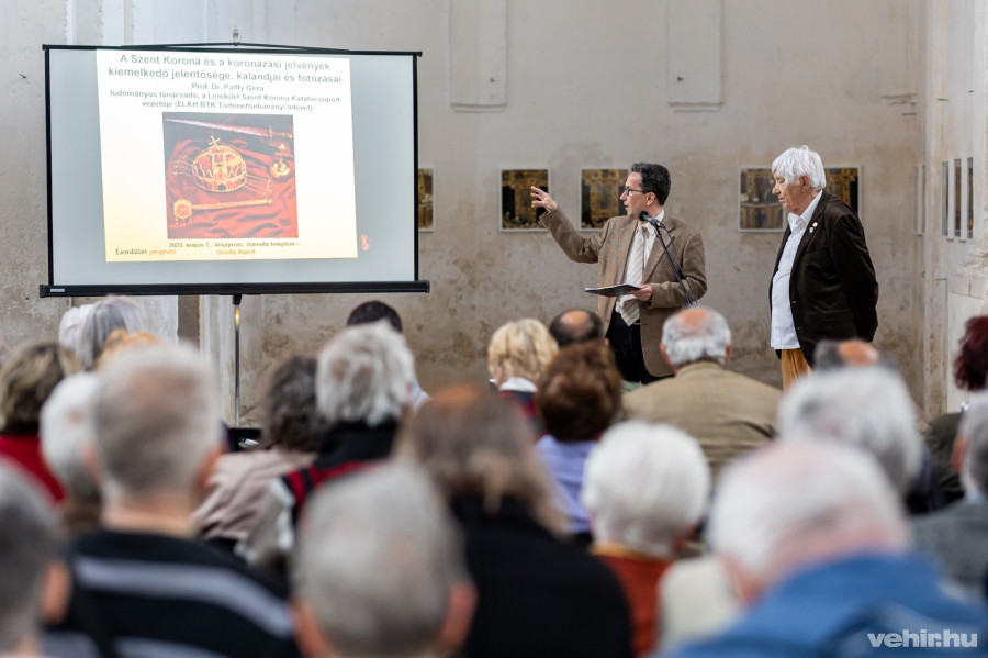 A kiállítást prof. dr. Pálffy Géza, a „Lendület” Szent Korona Kutatócsoport vezetője nyitotta meg egy előadással. Ebben a koronázási jelvények veszprémi kapcsolódásairól beszélt: a palást kötődik legközvetlenebbül városunkhoz, hiszen a hagyomány szerint itt készült. Pálffy felhívta a figyelmet arra, hogy a paláston található az államalapító házaspár egyetlen ismert, hiteles kortárs ábrázolása. Ráadásul a palást az egyetlen koronázási kellék, amiről biztosan tudhatjuk, hogy I. István idejében készült.
