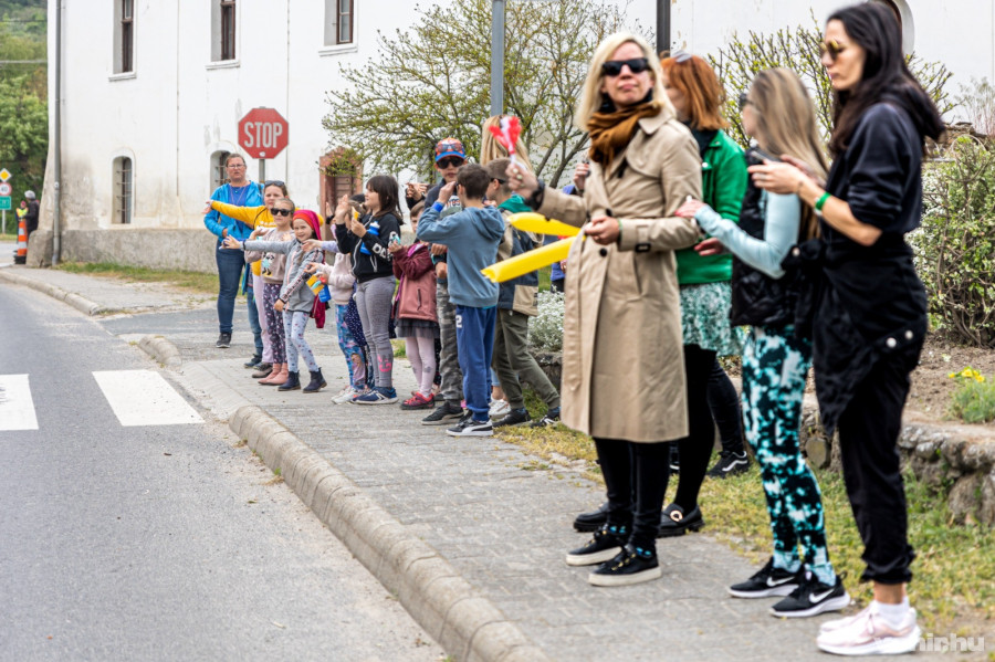 "Valter Atti, campinggel is jobb vagy náluk" - üzenték a hegyi hajrá közelében a szurkolók a Jumbo-Visma magyar bajnokának, aki nincs ott a mezőnyben, míg más szurkolók dudálásra biztatták a kísérőautókat.