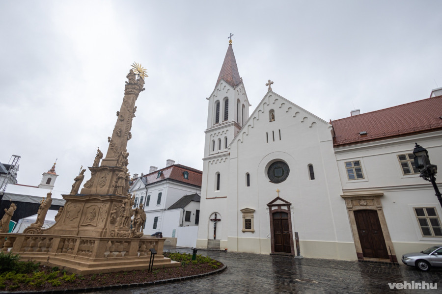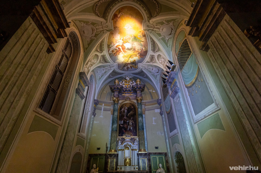 Az Érseki Palota dísztermei után pedig még mindig várt egy kuriózum a csapatra, ehhez viszont a szemközti Ferences templomba kellett átmenni. Itt a Work in Progress keretében berendezett tárlaton a szervezők a fényekkel is ügyesen játszottak, különleges módon megvilágítva szintén a mennyezeten keresendő Szentháromságot, valamint a téren ugyancsak ennek az isteni jelképnek szentelt szoboregyüttes eredeti alakjainak formáit.
