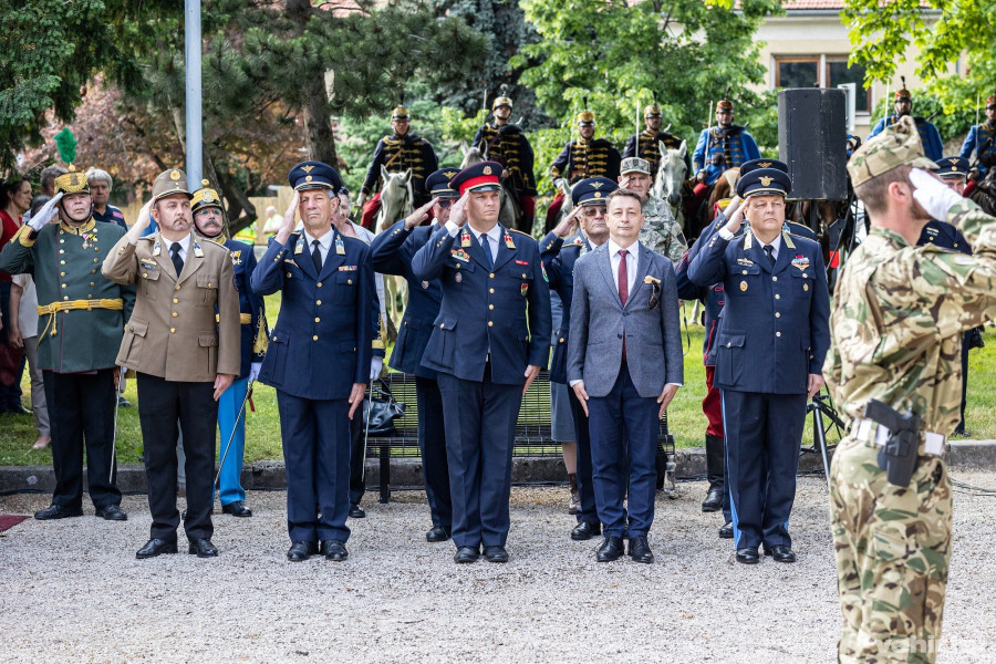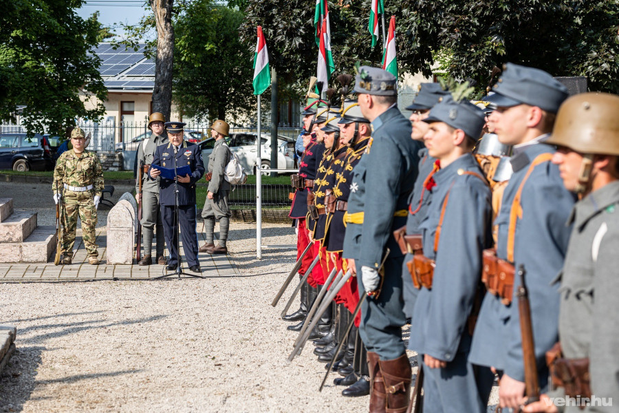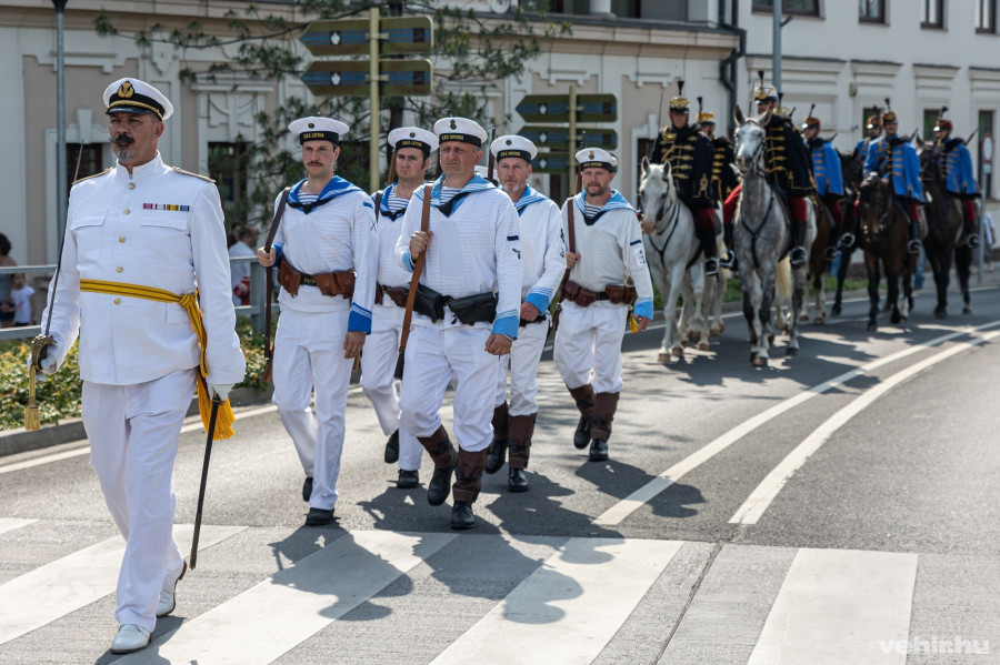Előtte azonban a Centenáriumi Hadtörténeti Egyesület tartott látványos bemutatót a belvárosban. Ők egyébként egész nap kint voltak a Kossuth utcán, de elsétáltak az Óváros tér fele is. Huszárok, tüzérek, gyalogsági katonák, de még történelmi magyar haditengerészek is felvonultak.