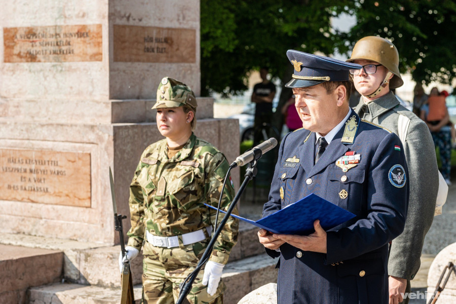 Veszprémben a hagyományokhoz hűen idén is a Vörösmarty téren tartották a központi ünnepséget, amelyen dr. Koller József, dandártábornok, a Magyar Honvédség Légierő Parancsnokságának megbízott parancsnoka mondott ünnepi beszédet.
