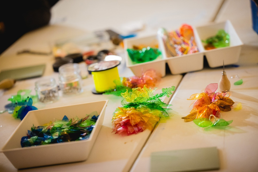 Az idei workshop szezont Nagyvázsonyban, az Eger-Víz Napok keretében nyitotta meg a csapat, ahol vízi élővilág és a folyómenti környezet megóvása került a középpontba, így a színes pet palackok kis díszekké, fülbevalókká és kitűzőkké alakítása is más értelmet nyerhetett. A veszprémi, három hétvégét átfogó GyereKert progamon pedig régi úszógumikból és matracokból készíthettek a résztvevők fenntartható partidekort a Fűzd Újra! matracmentő workshopon, valamint tavaszi motívumokkal hangolódhattak a jó időre a Kultúrmáz kerámiafestő foglalkozáson.