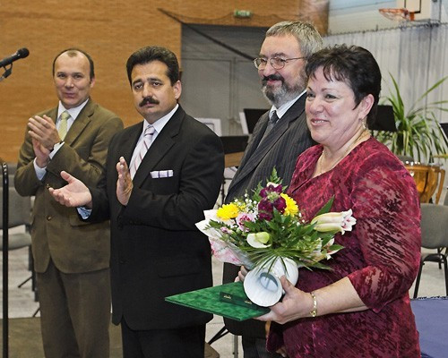 Az ünnepi gondolatok után, a díjat a polgármester, a tavaszi színekben pompázó csokrot Porga Gyula alpolgármester, a herendi vázát pedig Dr. Simon Attila a Herendi Porcelánmanufaktúra vezérigazgatója adta át a díjazottaknak: köztük Haász Máriának, aki az általa vezetett Alternatív Általános Iskola tagintézményében, a beilleszkedési, tanulási, magatartási nehézséggel küzdő, zömében túlkoros tanulók oktatását-nevelését látta el.