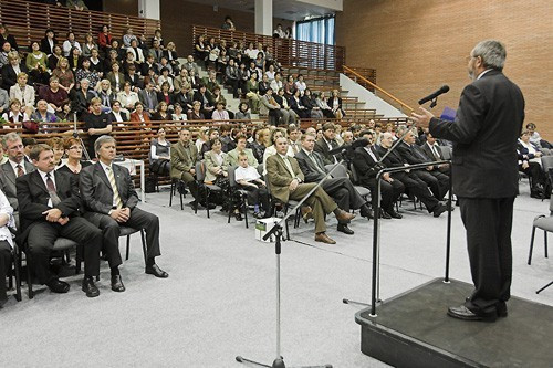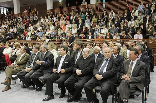 Közel 1300 tanár, pedagógus vett részt a városi ünnepségen, melyet a Lovassy gimnázium tornacsarnokában tartottak.