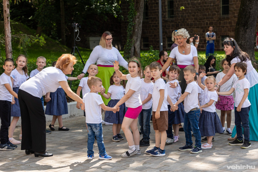 A dal nem sokkal 11 óra után csendült fel a téren, ahol Szarka Tamás vezetésével egyszerre énekelték a gyerekek, akik láthatóan már korábban begyakorolták a szöveget és a hozzá kapcsolódó egyszerűbb táncmozdulatokat.