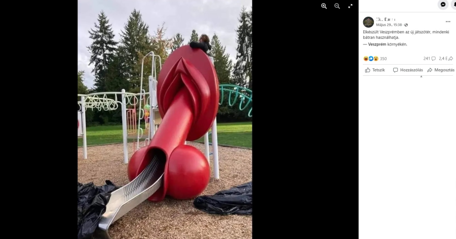 Csakhogy azt a legtöbben nem vették számításba, hogy egy egyszerű Facebook-poszt esetében nem árt, ha némi forráskritikát is gyakorol a gyanútlan internetfelhasználó. Ugyanis attól, hogy valaki talál egy olyan képet a neten, ami alkalmas a megbotránkoztatásra, de csak annyira, hogy a Facebook gumigerincű cenzorain még ne akadjon fenn, és ezt kiposztiolja egy félrevezető szöveggel, attól még lehet bődületes nagy kamu az egész. Pont, ahogy a veszprémi péniszcsúszda esetében is volt.