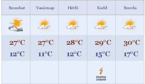 Erősödik a nappali felmelegedés, a maximumok 21 és 26°C között várhatóak. A folytatásban sok napsütésre, egyre melegedőbb időre készüljünk.