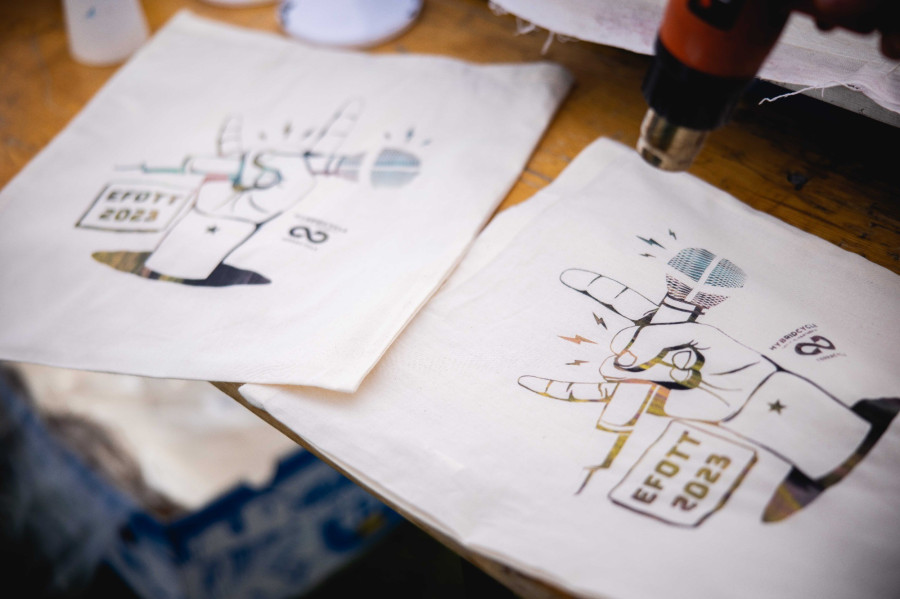 Pénteken a foglalkozáson résztvevők egyedi mintás vászontáskákat készítettek szitanyomó technikával. A programhoz csatlakozók megismerkedhettek a szitanyomás alaplépéseivel, betekintést nyerhettek az eljárás folyamataiba.