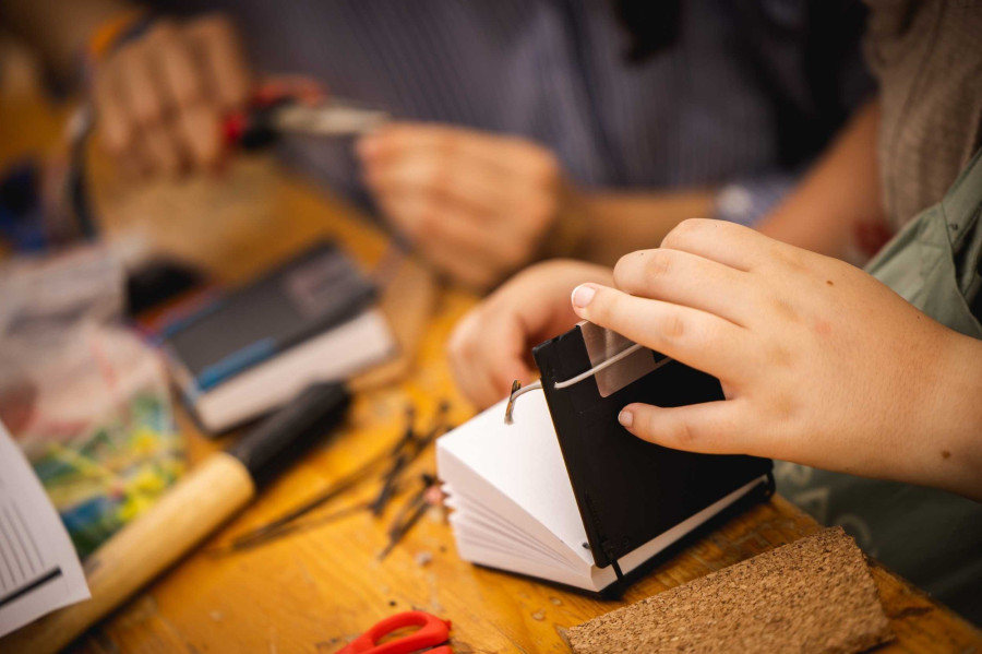 Szombaton előkerültek a régi, már feledésbe merült floppy lemezek, amelyekből a résztvevők egy kis kreativitással jegyzetfüzeteket készítettek az újrahasznosítás égisze alatt. A noteszre végül dalszövegekkel és irodalmi idézetekkel ellátott matricák kerültek.
