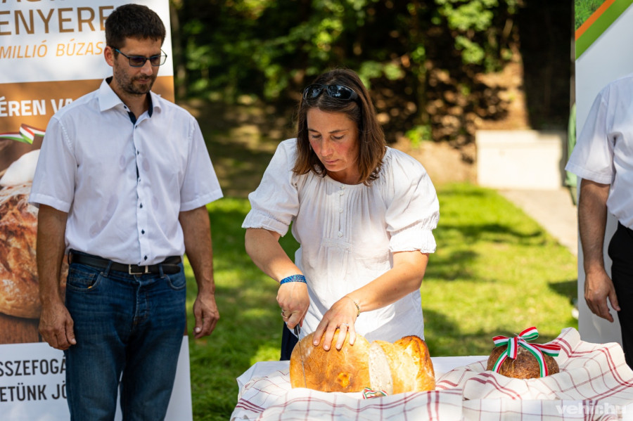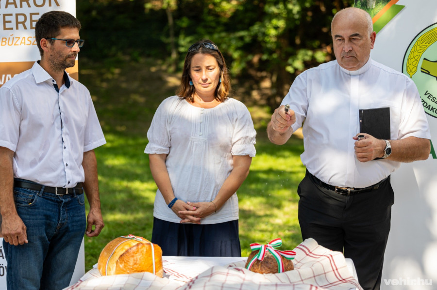 A köszöntők után a kenyeret Szabó János, a Veszprémi Érsekség gazdasági helynöke áldotta meg, majd kóstolhatták meg a megjelentek.