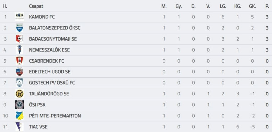 Az első, elhalasztott fordulót követően az elmúlt hétvégén négy mérkőzéssel rajtolt a bajnokság: a házigazda Kamond 6-1-re nyert a TIAC ellen, míg a Balatonszepezd három ponttal távozott Peremartonból (0-2). Az Ősi–Nemesszalók derbit a vendégek nyerték (1-2), Badacsonytomaj pedig 3-2-re diadalmaskodott Taliándörögdön.