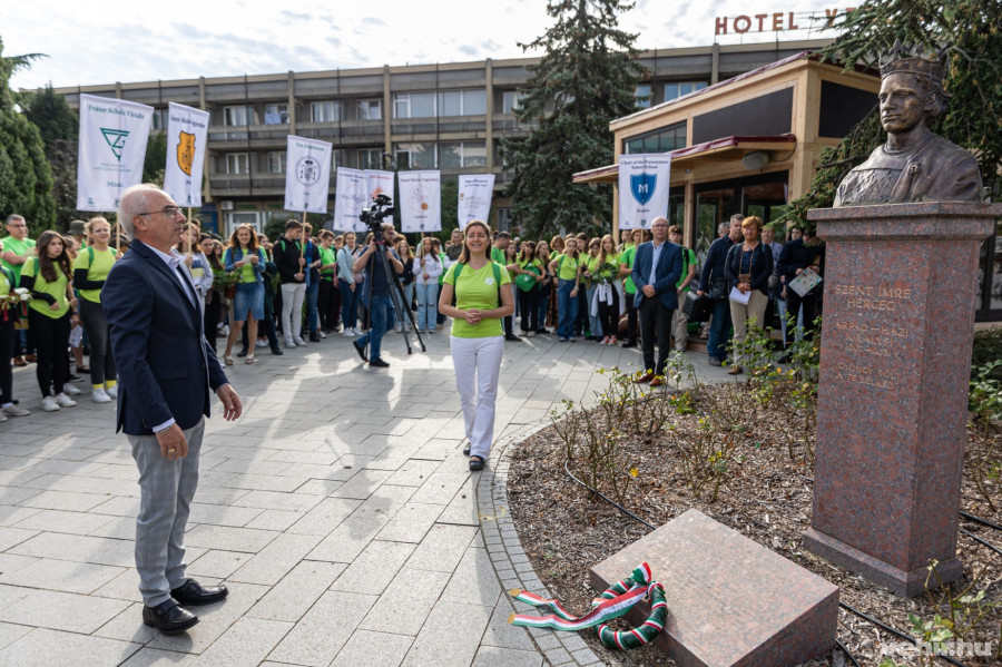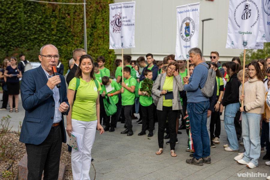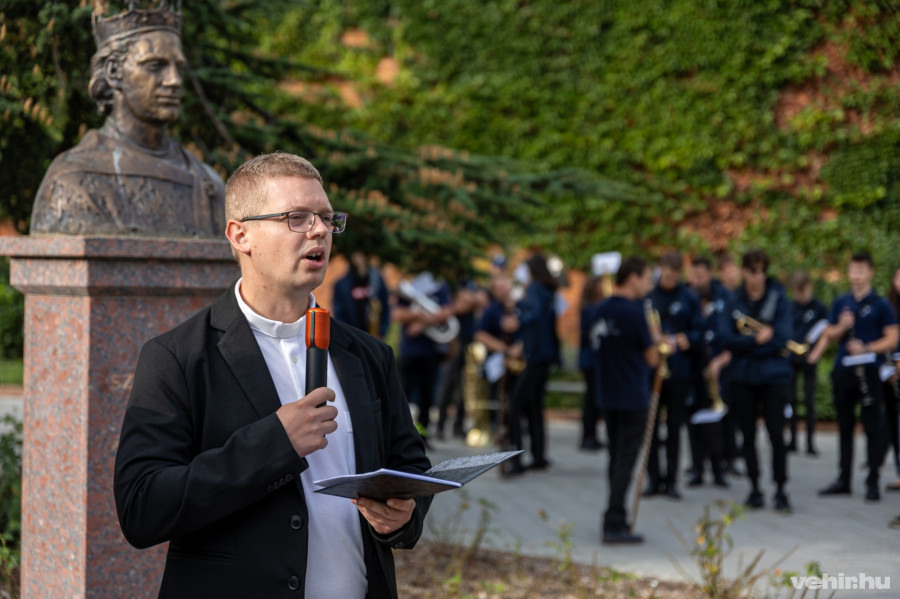 Végül, mielőtt megkoszorúzták volna Szent Imre szobrát, Tamás Zoltán atya, a Szent Margit templom káplárja szólt a fiatalokhoz.
