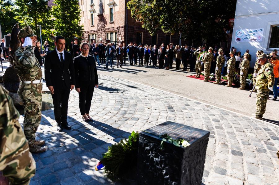 Az ünnepi beszéd után az alpolgármester Ovádi Péter parlamenti képviselővel együtt, illetve a helyőrség katonái és a megjelentekkel együtt elhelyezték az emlékezés koszorúit.