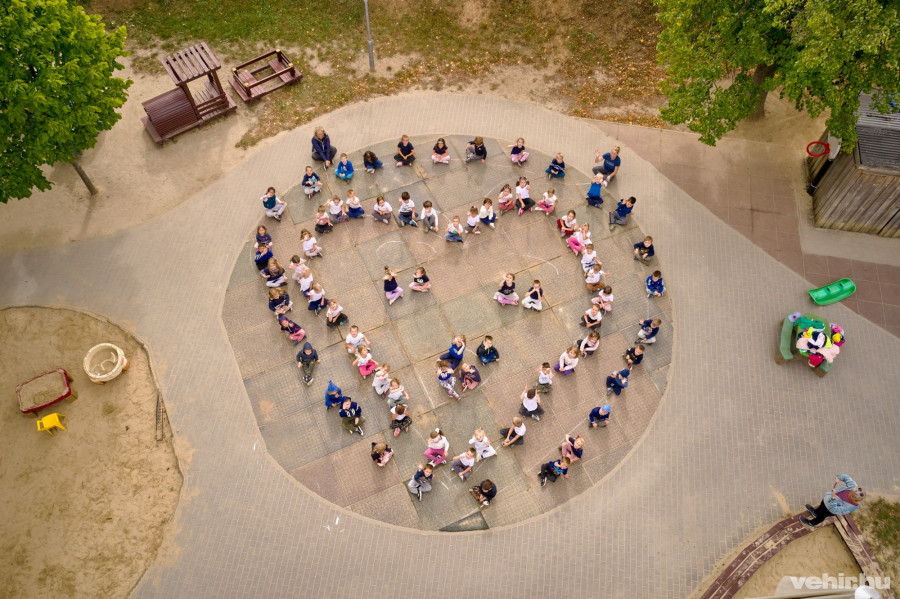 A veszprémi Ringató Óvodában például egy élőképet rajzoltak a gyerekek, ami madártávlatból egy bagoly arcát formázta.