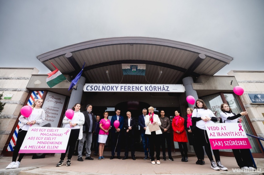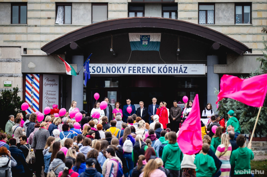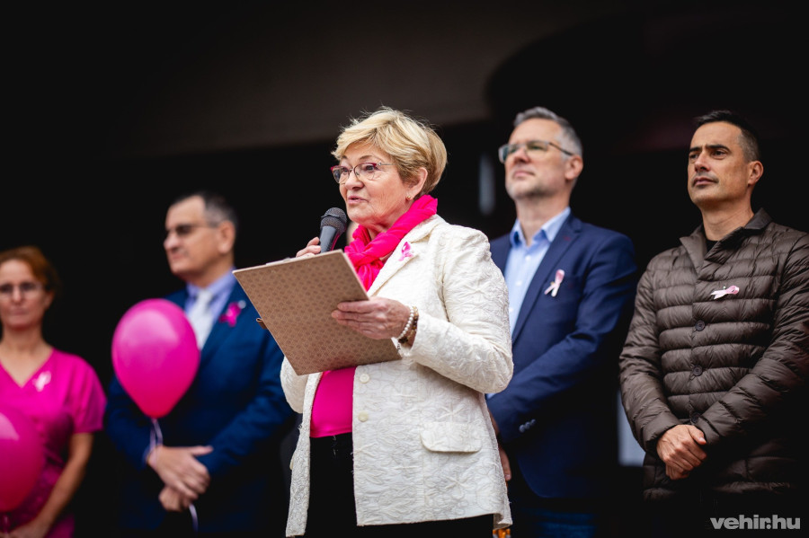 A tömeg a kórház főbejárata előtt gyülekezett, akiket dr. Hornyák Lajos, onkológus főorvos köszöntötte elsőként. Ő ugyancsak hangsúlyozta a rendszeres szűrővizsgálatok fontosságát, valamint kitért arra is, hogy nem szabad tabutémaként kezelni a mellrák kérdését, ezért biztatta a nőket, hogy férjükkel, párjukkal is beszéljenek erről és kérjék meg őket, hogy legyenek társaik a szűrővizsgálatoknál is.