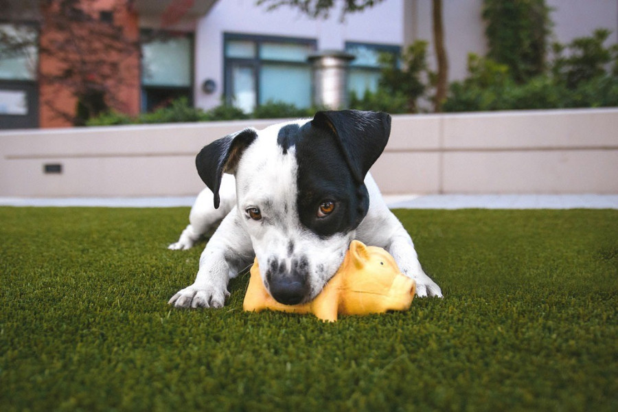 A kis kedvenc és a műfű egyáltalán nem zárják ki egymást. Nem kell attól sem tartani, hogy a kutya vagy a macska kikaparja vagy kirágja a gyepet, hiszen az állatok szinte ösztönösen veszik birtokba és hemperegnek meg rajta. Vannak kifejezetten kutyabarát típusok, melyek sűrű és rugalmas szálakkal rendelkeznek, melyek hossza lehetővé teszi a gyors és egyszerű tisztítást.