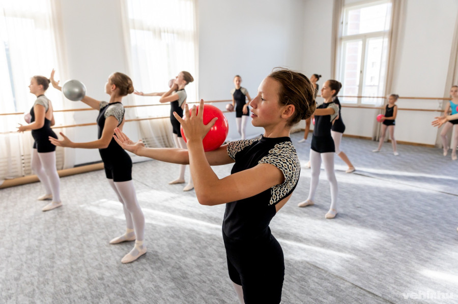 A lányok mindenesetre örülnek minden lehetőségnek: nagy elszántsággal, fáradhatatlanul és boldogan végzik a nyújtásokat, karikáznak, próbálják pörgetni a labdát, szalagot, miközben átsasszéznak a termen. Mesterük szenvedélye, hivatástudata rajtuk is érződik. Élvezik, hogy szinte minden alkalommal tanulnak valami újdonságot, érdekességet, a jó hangulatú órákat. A fejlődés pedig egyértelmű: a nyári workshopokon egy héten ötször két órát gyakoroltak, az rengeteget segített abban, hogy gond nélkül kivitelezzék például a spárgát, azóta pedig folyamatosan finomodik a technikájuk, ami a balettban is nagyon jól jön.
