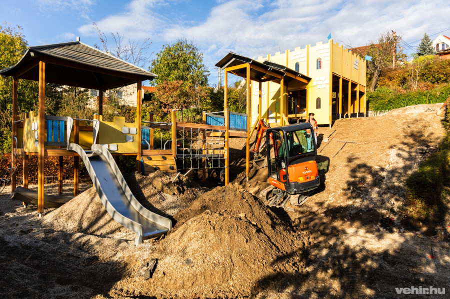 Sándor Tamás, a 30 TÉR Kereskedelmi és Tervező Kft. kivitelező cég képviseletében a Rézsűs játszótér felújításának részleteire tért ki: a régi rézsűs felületet egy új technológia segítségével újítják meg, helyszíni gumiburkolat kiépítésével. Jelenleg az aljzatbeton kialakítása zajlik, egy acélháló tartja majd stabilan a rézsűt, amelyre a gumiburkolat kerül. A játszótér párhuzamosan futó régi csúszdái helyett újakat telepítenek majd, és várhatóan decemberben fejezik be a felújítást.