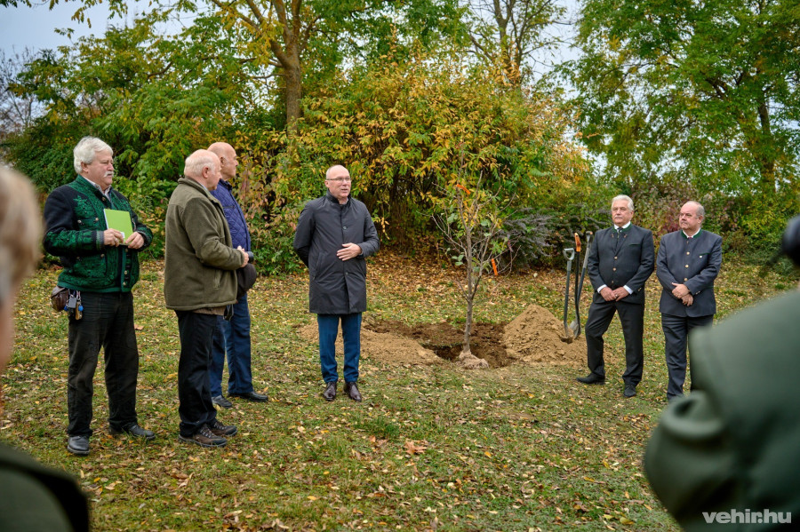 Az előttünk álló hétvégén az aréna a tizedik Bakony Expónak ad helyszínt, pénteken délelőtt pedig már gyülekeztek a kiállítók, amikor egy nagyobb csoport előtt elültették a fát.