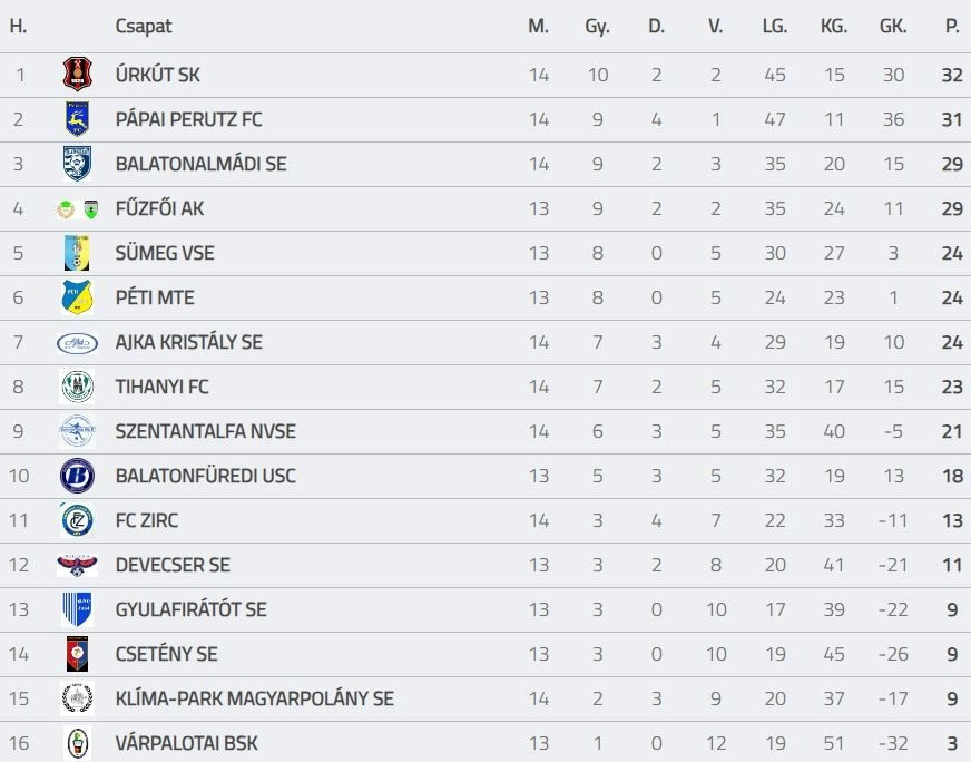 VEHIR.HU vármegyei labdarúgó élvonal, a 14. forduló eredményei: