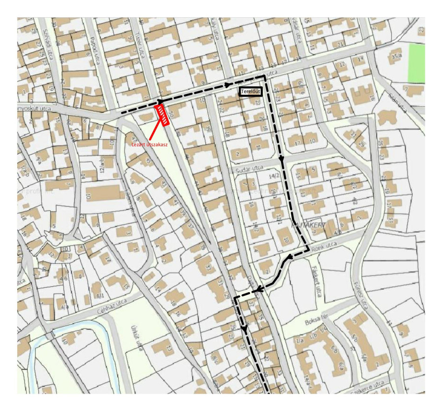 mellett. A kivitelező terelőutat jelöl ki a Deák utca irányába haladóknak, mégpedig a Fáskert