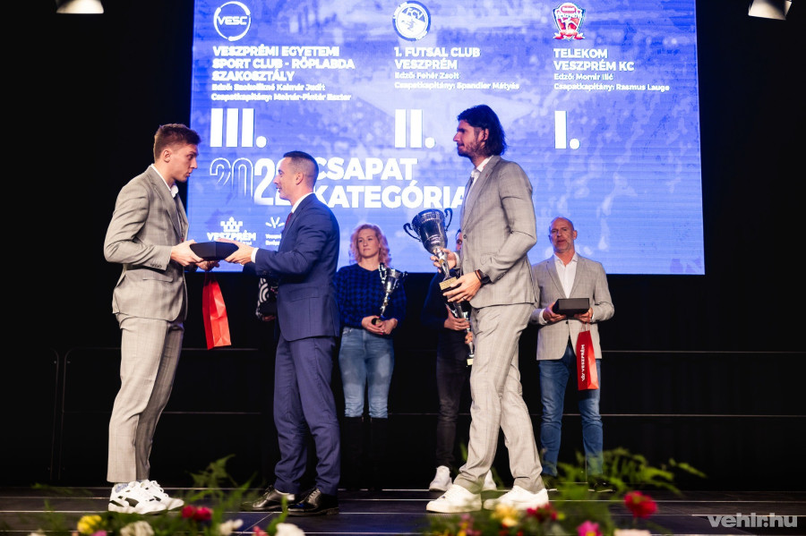 A köszöntőbeszédek után a program elérkezett a díjesőhöz. Közel 70 elismerés és városi díjat adtak át, egy részét a 2022-es eredmények után, másik felét pedig az idei teljesítmények alapján, de például Veszprém Város Sportjáért-díjjal a régóta kitartó sportért végzett munkát is elismerték.
