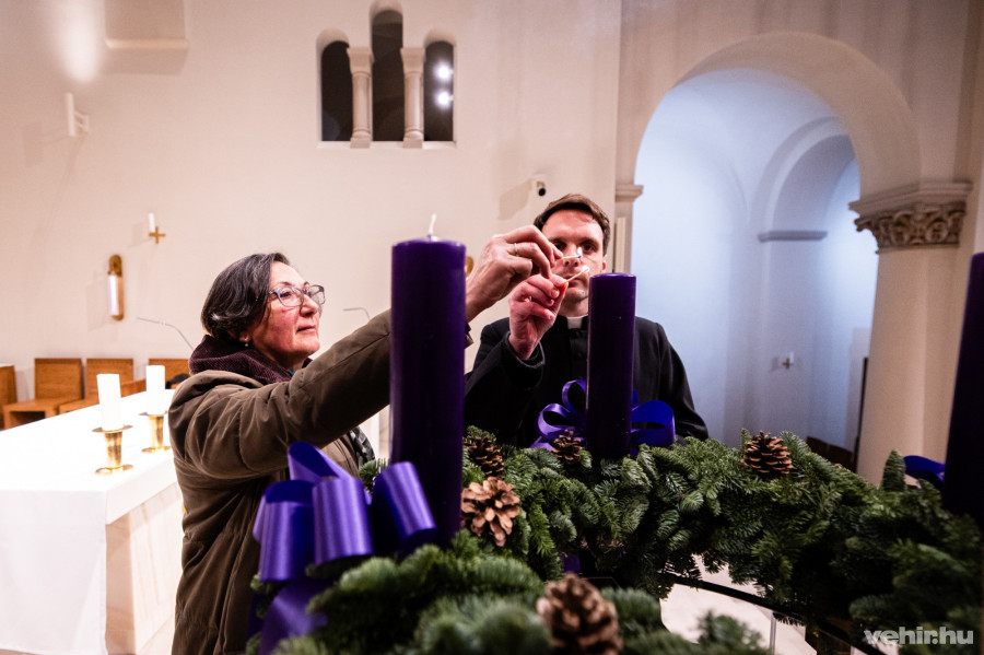 Az ünnepélyes gyertyagyújtás megadta a hangulatot a várakozás, a befelefigyelés elmélyítéséhez.