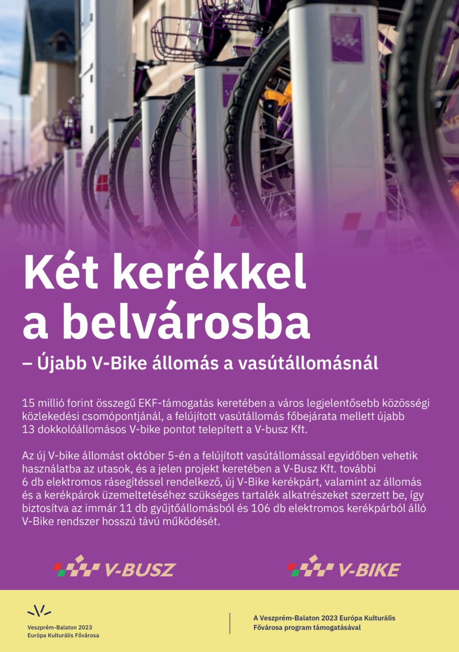 Új V-bike állomást telepítenek a vasútállomáshoz