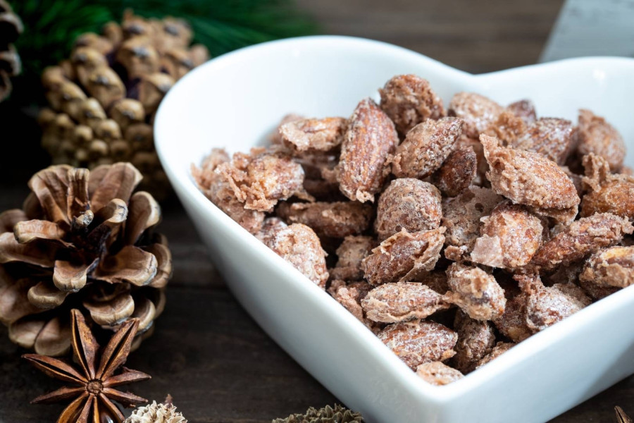 Hozzávalók: 20 dkg héj nélküli mandula, fél bögre kristálycukor, fél bögre nádcukor, 1 tk őrölt fahéj, fél ek víz, 1 kk őrölt gyömbér, 1 csipet só, 1 tk őrölt fahéj, fél kk őrölt szerecsendió, 1 kisebb tojás fehérjéje