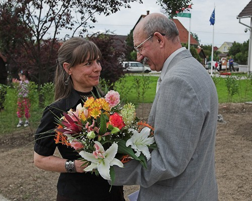 Dombai Gézáné, Zsófi néni, a falu legidősebb lakója és Sári Lajos polgármester vágta át a nemzeti színű szalagot, majd az egyház képviselői megáldották az alkotást. Az ünnepség Hatás Andrea színésznő és Csobolya József előadóművész műsorával zárult.