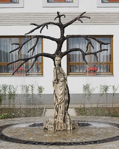 Az életfa, amelynek ágaiból víz csobog, erőt sugároz, mondta Fodor. Ölelő, karokként lógó ágai a befogadó és szabad közösséget jelképezik, óvva a falu lakóit. Az alkotó, egy varázslatot álmodott meg, és adott minden embernek, aki a szobor-kompozícióra tekint. Egy tavaszi virágcsokorral köszönte meg Rakk Zsuzsa művészi munkáját.