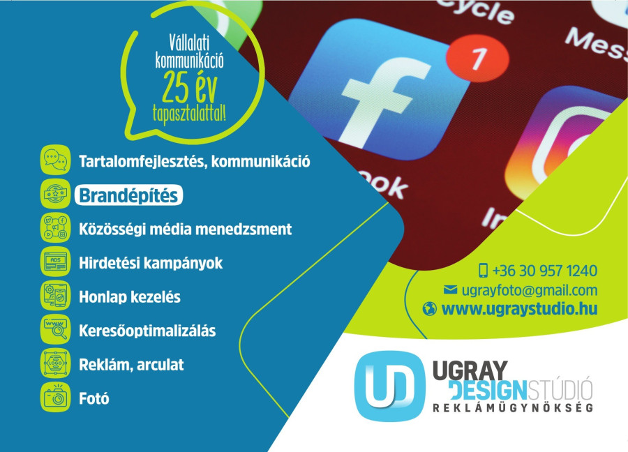 Ugray Adriánnak hívnak, print és online reklámok szervezésével, tervezésével, készítésével, cégek kommunikációjával foglalkozom több, mint 25 éve Veszprémben és Veszprém megyében. Munkám során széles körű és értékes tapasztalatokat szereztem a vállalkozások arculatának, valamint hirdetési felületeinek megalkotásában és megjelenítésében.