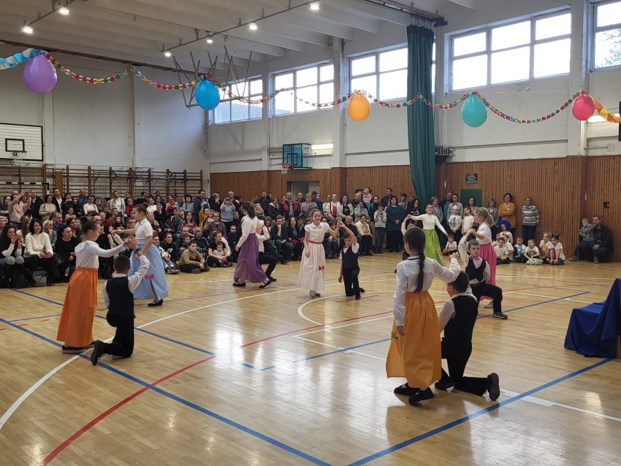 Múlt pénteken a Cholnoky Jenő Általános Iskolában már délelőtt javában zajlott a farsangi készülődés, délután pedig az iskola tortatermében kezdetét vette a jelmezes mulatság. A hangulatot az alsós osztályok előadásai fokozták, amin szép számmal vettek részt szülők és nagyszülők is. A műsort egy elegáns keringő nyitotta meg, majd az előadásokat az egyéni jelmezes felvonulás követte, de az este folyamán tombolahúzás is fokozta még a hangulatot. A gyerekek jóleső fáradtsággal és élményekkel gazdagodva adták át a farsangi stafétabotot a felnőtteknek, akik pedig másnap, szombaton gyűltek össze a hagyományos iskolai bálon az iskola előcsarnokában.