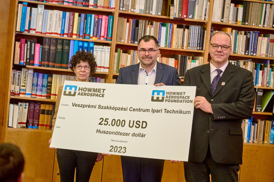 Az elnyert összeget jelképesen csütörtök délután adta át Szabó István, a Howmet-Köfém Kft. nemesvámosi üzemének gyárigazgatója Irányi László intézményvezetőnek és Lantos Andrának, a Veszprémi Szakképzési Centrum főigazgató-helyettesének.