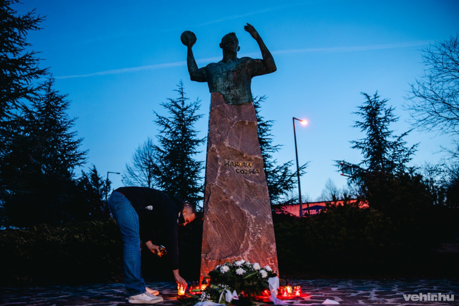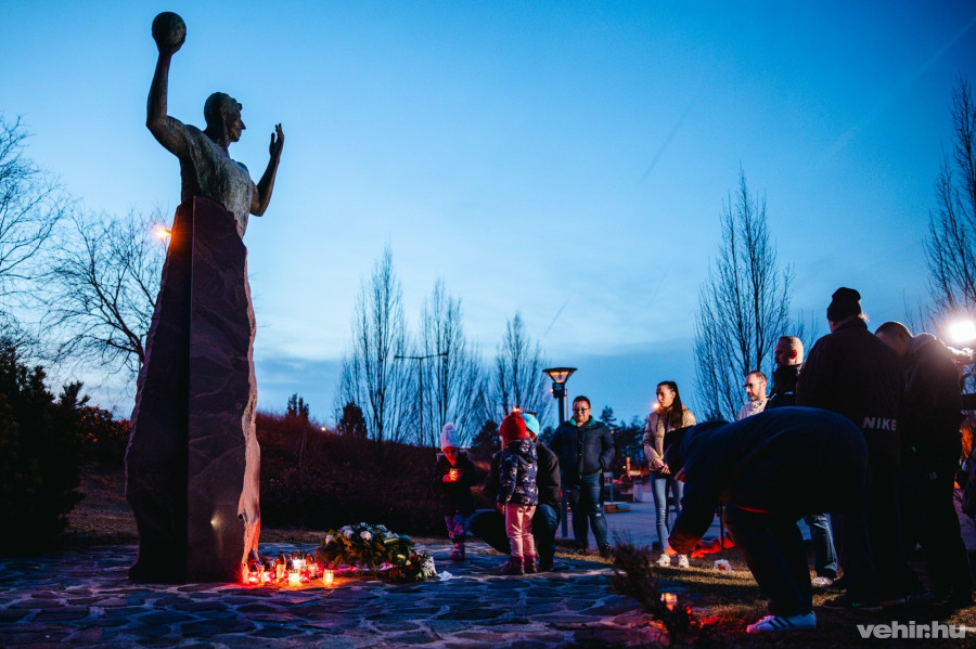 A Telekom Veszprém szurkolói csütörtök kora este csendes gyertyagyújtást tartottak a tizenöt esztendeje tragikus körülmények között elhunyt román kézilabdázó, Marian Cozma szobránál – Vámosi Patrik fotóriportja.