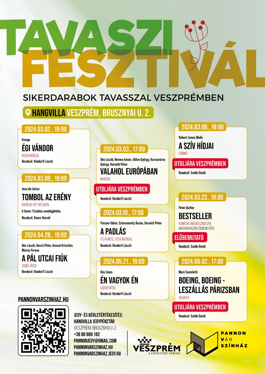 Ráadásul márciusban jön a Tavaszi Fesztivál is: március 2. és június 2. között összesen kilenc előadásra válthatunk jegyet, amelyek közül hármat most utoljára láthat a közönséget, így A szív hídjait, a Valahol Európábant és a Boeing, Boeing – Leszállás Párizsbant.