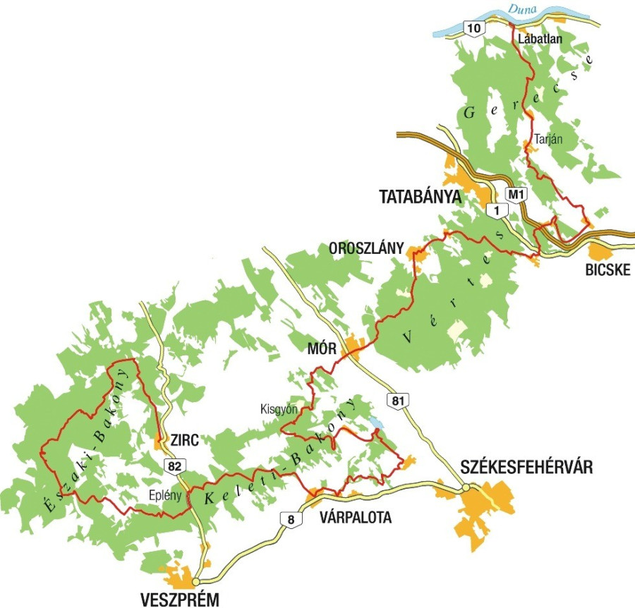 Túráink során végighaladunk a Cuha-völgyén, felkapaszkodunk a Köris-hegyre, a Papodra, leereszkedünk a Tési-fennsíkról Várpalota felé, bebarangoljuk a Móri-árok településeit, átkelünk a Vértes vonulatain Mórról Oroszlány felé, hogy aztán Tarjánnál már a Gerecse hegyoldalait koptassuk, míg végül a Duna-parton találjuk magunkat a piszkési vasúti megállónál, az útvonal végpontjánál. A túra több részletben is teljesíthető, és azt is szabadon választhatjuk meg, hogy melyik irányba teljesítjük az egyes szakaszokat; a lényeg, hogy a teljes útvonalat bejárva minden pecsétet begyűjtsünk a dátum megjelölésével együtt. A túrát teljesítők az igazolófüzetek leadása és ellenőrzése után kitűzőt igényelhetnek.
