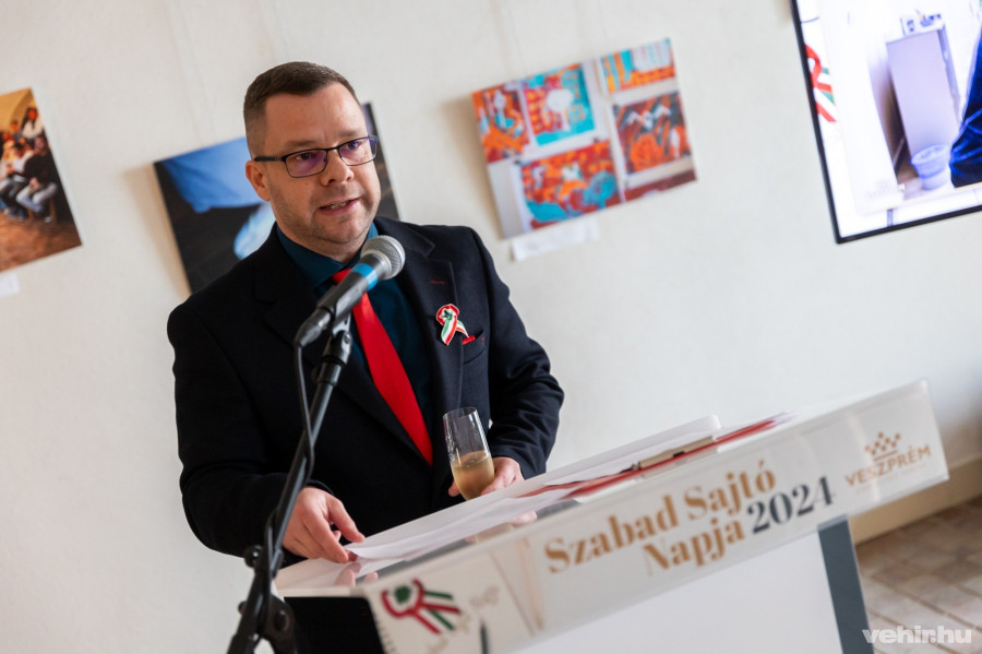 Müller Mihály egy történelmi visszatekintővel kezdte beszédét, egészen az 1848-as forradalom kitöréséig ment vissza, felidézve, hogy hogyan terjedtek akkoriban a hírek. Március 13-án Bécsben tört ki a forradalom, rá két nappal Pest-Budán, majd szintén két nap kellett az információk áramlásának, hogy Veszprémben is megtudják az emberek, mi történt. Ezeket a híreket a pesti nagyvásárra felment veszprémi kereskedők hozták el ide.