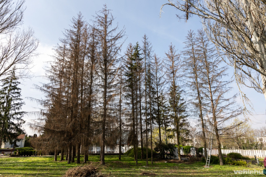 Sajnos a klímaváltozás miatt több magas fenyőfa is kiszáradt a temető parkoló felöli bejáratánál. Ezeket az élettelen növényeket a városüzemetető vállalat munkatársai elkezdték kivágni, hogy ne váljon balesetveszélyessé a helyzet, a helyükre pedig a megváltozott klímának megfelelő fákat fognak ültetni.