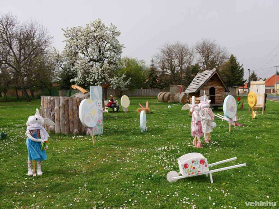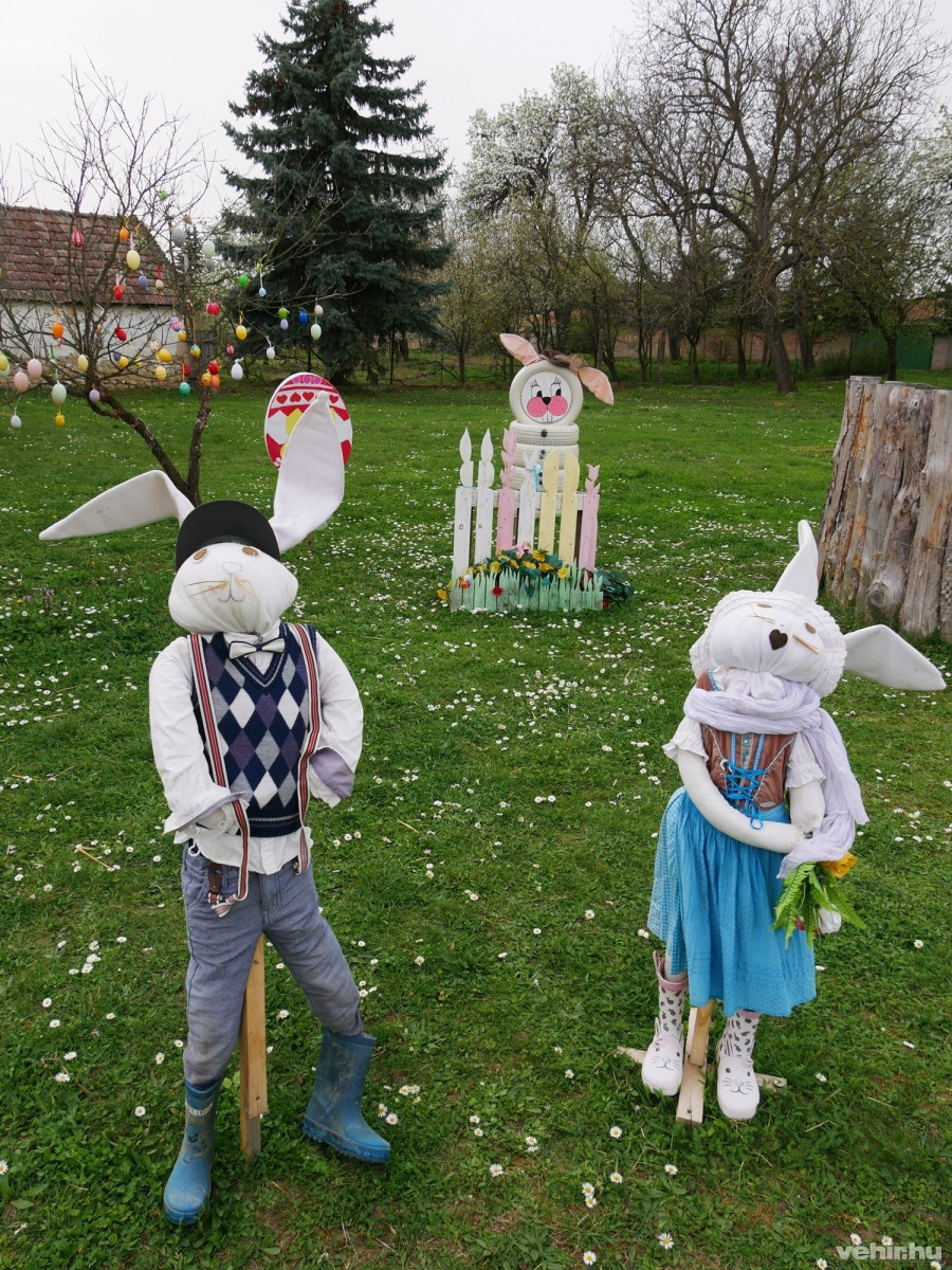 Mert bármilyen egyszerű dologról is legyen szó, egy karácsonyi, őszi, tavaszi vagy most épp húsvéti dekoráció elkészítése végül is közösséget teremt. Először csak egy pár ember alkotta magot, azoknak a körét, akik összegyűjtik a falu ezermesterétől a gipszkartont a tojásokhoz, majd megfestik őket. Akik kitömött nyúlbábokat készítenek és a gyerekek kinőtt ruhájával felöltöztetik őket, hogy úgy fessenek, mint Beatrix Potter híres mesehősei. Akik az elszáradt kis fát elszállítják a térre, letűzik és tojásokkal díszítik, akik felállítják a nyúl bábokat is, meg az óriás, szalmából készült kotlóst. Aztán ez a kör szépen szélesedik, ahogy egyre többen jönnek megcsodálni a mesebirodalmat, közben szóba elegyednek a szintén arra járókkal, ismeretséget kötnek vagy újítanak fel. Néhányukban talán még az a gondolat is megszületik, de jó lenne szintén alkotni, és páran nemcsak eljátszanak a gondolattal, hanem megvalósítják, és aztán belőlük lesznek a dekoráló, hagyományőrző csapat újabb tagjai.