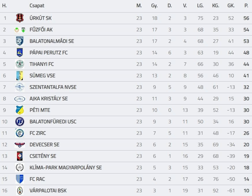 Tabella forrása: adatbank.mlsz.hu