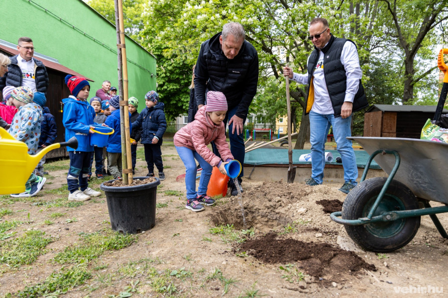 Ezután következett a kertészkedés, a VALEO biztosította hozzá a nyírfákat, amelyeket a kiscsoportosok lelkes közreműködésével és saját kis kerti szerszámaik segítségével ültettek el a Föld napjának és a közelgő Madarak és fák napjának tiszteletére.