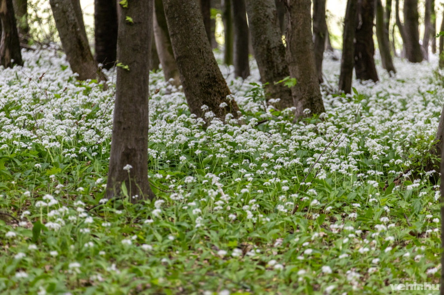 A kora nyári időjárás, ami a hidegfront előtt térségünkben uralkodott a medvehagyma virágzását is előrébb hozta. Ilyenkor pedig az apró fehér pontok úgy festik meg az erdőt, mintha zúzmarás lenne a talaj.
