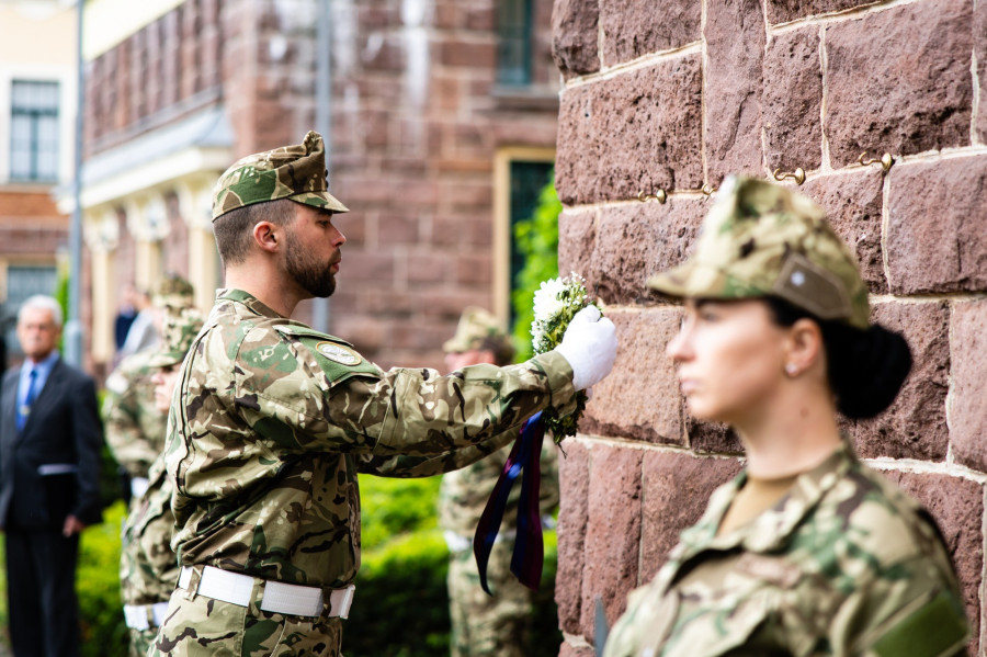 Ezt követően Oláh Emil lelkész mondott imát, majd az alapítók leszármazottai, a szervezők, Veszprém Város Önkormányzata nevében pedig Porga Gyula polgármester elhelyezte a megemlékezés virágait a Megyei Levéltár udvarában található emléktáblánál.